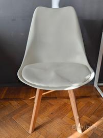 Sedia con gambe in legno naturale, ottima per cucina, soggiorno, sala da pranzo, studio o ufficio. La sedia ha dimensioni di 54 cm di larghezza, 46 cm di profondità e 82 cm di altezza. L'altezza della seduta, pari a 45 cm. La sedia è composta di pp polipropilene con un cuscino in ecopelle, antiscivolo imbottito e con 4 gambe di legno