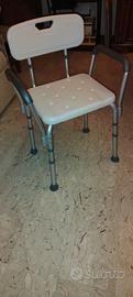 Sedile da doccia regolabile in altezza con seduta antiscivolo dotata di fori per il deflusso dell’acqua.