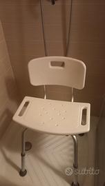 vendesi sedia per doccia mai usata, regolabile in altezza è possibile togliere lo schienale. leggera e sicura. Prodotto di qualità comprato in negozio specializzato in prodotti ortopedici. piedini gommati totalmente antiscivolo. anche la plastica della seduta è antiscivolo.