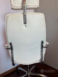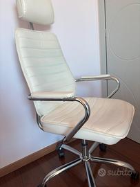 Vendo sedia da ufficio ergonomica in ecopelle color bianco, usata veramente poco, struttura in metallo cromato lucido. Perfetta per ufficio o studio domestico. Caratteristiche: ∙Schienale alto imbottito con cuciture ∙Poggiatesta regolabile ∙Braccioli imbottiti ∙Base a 5 razze con rotelle ∙Altezza seduta regolabile In ottimo stato, completa di istruzioni originali. Prezzo affare!