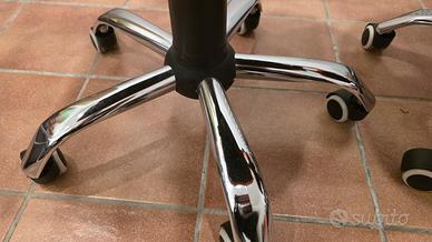 Usata poco, ben tenuta. Colore arancione, gambe lucide. Altezza regolabile. Presso riferito ad una sedia. Disponibile una seconda, con piccola lacerazione sullo schienale