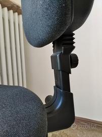 Sedia in perfette condizioni da ufficio o da cameretta. La base con rotelle è in nylon e regolabile sia in altezza che con lo schienale. La sedia è imbottita e comoda, realizzata con diversi strati di materiale, anche ignifugo