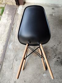Seria nera Brico, con gambe rovere, seduta in plastica nera.