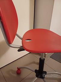 Sedia regolabile, con rotelle, adatta ad una cameretta per ragazzi. Colore rosso.
