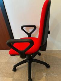 Sedia per Ufficio - scrivania a rotelle in stoffa rossa con braccioli. Regolabile in altezza.