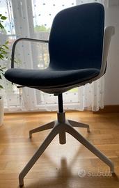 Vendo sedia ergonomica colore blu jeans (tessuto) e bianco (braccioli e telaio), regolabile in altezza e inclinabile per un comfort personalizzato,