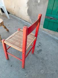 sedia piccola in legno e paglia