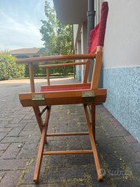 Sedia pieghevole in legno e tessuto da regista, in buone condizioni come da foto e di ottima qualità No spedizione, solo ritiro a mano a Rosate oppure Milano sud ovest (Assago, Corsico, Buccinasco)