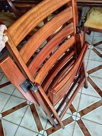 Vendo sedia pieghevole in legno con qualche difetto del tempo e assenza di un gommino del piede. Misure: 62 cm larghezza, 110 cm altezza, 60 cm profondità. Ritiro solo in loco.
