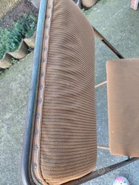 Sedia pieghevole, vintage anni 70 Lafuma. in metallo con seduta e schienale in velluto a costine color oca