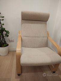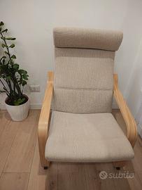 Vendesi sedia Poang Ikea colore impiallacciato rovere mordente bianco/Hillared beige, in ottime condizioni.