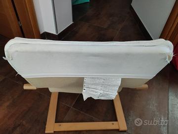 Struttura per poltrona per bambini, impiallacciatura di betulla. Il cuscino, leggermente strappato lungo i bordi, è omaggio!