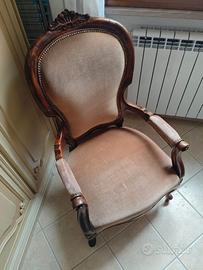 Vendo sedia / poltrona classica imbottita con braccioli, adatta a living o camera in stile tradizionale.