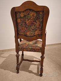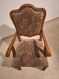 Grande sedia/ poltrona con braccioli,in noce,artigianale piemontese anni 60. Buona imbottitura in tessuto gobelin fantasia scura, da rinfrescare ma senza macchie e integro. Altezza schienale cm 106, altezza seduta cm 48, dimensioni seduta cm 48x 55. Molto comoda per la postura. Condizioni ottime considerando l'età.