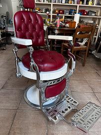 Antiche poltrone da barbiere Scuderi Catania con seduta rotonda, originali dell'epoca, completamente restaurate, fatturabili. Vari colori disponibili, tutte dotate di pistone idraulico, rivestimenti in vera pelle pieno fiore di prima scelta.