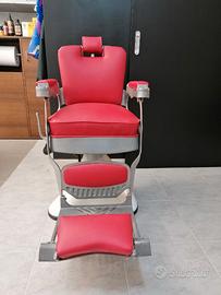 Poltrona da barbiere vintage anni 50, marca Jupiter completamente ristrutturata solo un anno fa nelle sue componenti meccaniche, spazzolata nelle parti in acciaio e totalmente rifoderata.