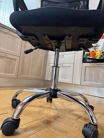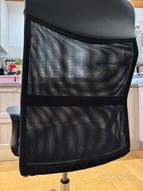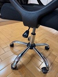 Vendo comodissima e nuova poltrona da scrivania per studio o lavoro. La sedia è perfettamente funzionante e comoda, la vendo solo perche a breve dovrò traslocare. È stata relaizzata con un materiale robusto e traspirante e quindi sarà ottima da usare anche in estate. Per chi acquista la sedia regalo un accessorio acquistato alla lidl (anch’esso traspirante) per un maggiore supporto lombare (amche se la sedia è comodissima e non ne avrebbe bisogno). L’accessorio in regalo è visibile nell’ultima foto. L’avevo acquistata a circa 140 € ma io la vendo a 45 €