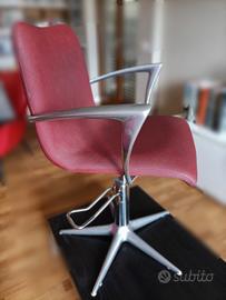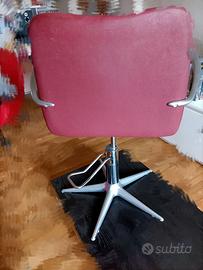 Sedia/poltrona elevabile di design anni '80 originale da barbiere o parrucchiere della MG BROSS color bordeaux in acciaio/metallo e finta pelle anni '80. Dimensioni circa 67,5x55 cm, 84 cm/h schienale, 48 cm/h seduta. Altezza regolabile con leva inferiore. Peso totale 12-13 kg circa. Tutto come da foto. No perditempo.