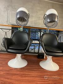 Disponibili varie sedie / poltroncine in vertroresina modellata e pelle vintage originali anni 60 / anni 70 usate in passato in un salone di bellezza. Solo consegna a mano. Design stile tulip o poltrona CHARLES E RAY EAMES PER HERMAN MILLER