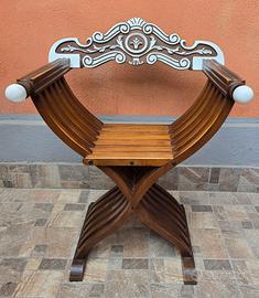 Sedia poltrona savonarola shabby chic legno noce