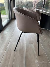 Vendo sedia poltrona con struttura molto robusta e comodissima ma con similpelle usurata. Colore beige/tortora. N. Pezzi 6 euro 150