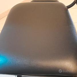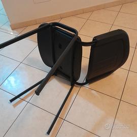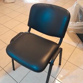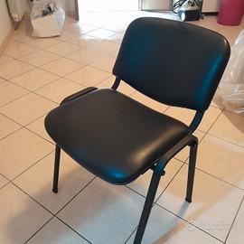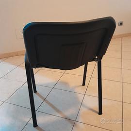 Sedia poltrona per ufficio, casa, sala riunione o sala da attesa in metallo, plastica e imbottitura in similpelle nera. Impilabile e antigraffio. Misure in centimetri: seduta 47x37, schienale 35x45, altezza dal suolo 46 e altezza totale 75. Nessun danno. Usura lievissima. Disponibilità 2 pezzi. Il prezzo si riferisce ad una sola sedia.