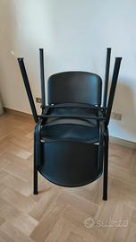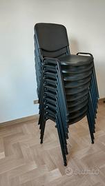 Set di 10 sedie per Sala d'attesa Ufficio riunione Meeting, impilabili, telaio alluminio nero, sedute in plastica nero.