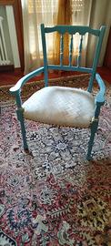 Vendo e restauro piccola mobilia,sedia/poltroncina Shabby chic,tinta Ottanio con foglia d oro,restauro completo con cambio fodera e inserimento rivetti,rivista completamente, possibilità di coppia