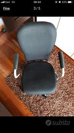 Sedia professionale per scrivania o da ufficio girevole nera. Ingombro del diametro delle rotelle 65 cm. Unico difetto che per regolare l'altezza bisogna sostituire il pistone . Si può utilizzare con la seduta tutta abbassata perché non si riesce ad alzare.lLa seduta utilizzabile è a 42 cm di h da terra. Ideale per bambini o persone molto alte.Ritro zona Niguarda.