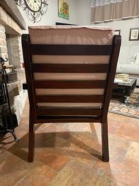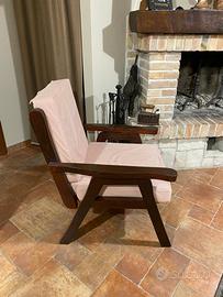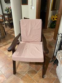 Sedua reclinabile in legno color nicd scuro e cuscini color salmone