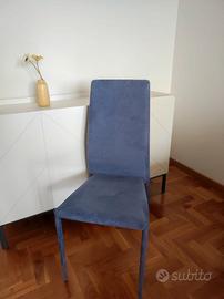Quattro sedie di Ingenia-Bontempi con struttura in acciaio, imbottite e completamente rivestite in pregiato tessuto Penny, morbido al tatto, L 44 cm, P 52 cm, A 101 cm, nuove, mai usate, 4 al costo di 3. Vendo causa mutate esigenze abitative.