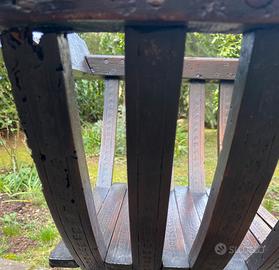 Sedia in legno ripiegabile tipo Savonarola. Nel tempo la sedia ha subito restauri e aggiustature. Misure chiusa: altezza cm.92, largh.cm.51, peso kg. 7,800. Condizioni: molto buone, piccola lacuna sotto il bracciolo visibile in foto.