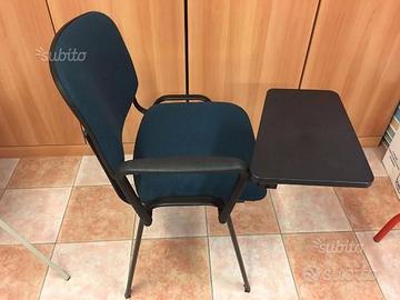 Serie di 12 sedie con leggio nuove mai usate, colore verde/blu, impilabili.