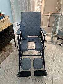 Sedia a rotelle perfettamente funzionante completa di cinghie per bloccare l’invalido, in similpelle lavabile