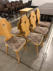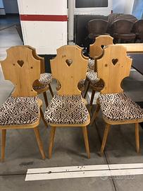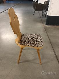 7 sedie rustiche in legno e cuscinetto in tessuto. Altezza 96 cm profondità 50 cm larghezza 40 cm