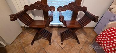 Vendo coppia di sedie in legno modello Savonarola. Pieghevoli, in condizioni perfette, nessun difetto. Prezzo 60 euro cadauna