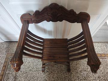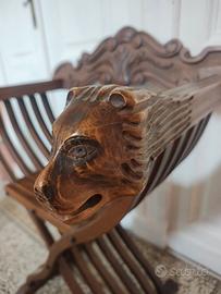 Sedia modello Savonarola in legno massello anni 50/60 perfettamente conservata. Togliendo lo schienale si piega come in foto. Preferibile consegna a mano, possibile spedizione con costi ahimè non contenuti più che per il peso della sedia (9kg) per il suo ingombro in volume anche ripiegata.