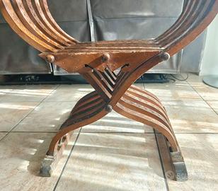 Sedia savonarola intarsiata pieghevole antica