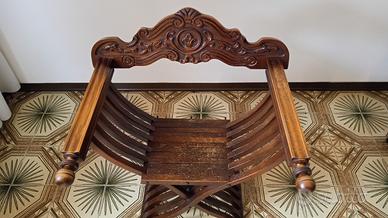 Sedia Savonarola in buone condizioni, anni 60. Qualche segno dovuto all'età, nessun tarlo nessun punto rovinato da umidità.