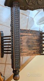 Sedia Savonarola pieghevole, che presenta un segno di usura sulla seduta, finemente interista, misura 63 cm di larghezza massima per 93 cm di altezza. spedizione a carico dell'acquirente.