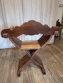 Sedia savonarola rinascimentale in legno di noce intarsiara a mano con anelli relax sui bracioli in ottime condizioninoriginarie , no spezione e affaristi