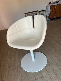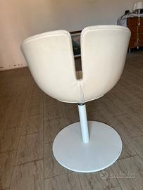 Sedia moderna bianca in pelle, perfetta per arredare studi o ambienti contract. Struttura metallica verniciata bianca con base circolare a disco, seduta imbottita e cuciture decorative in contrasto tono su tono. La sedia è girevole e offre un comfort elegante e funzionale. Altezza seduta: circa 45 cm - Larghezza seduta: circa 55 cm - Diametro base: circa 40 cm Ideale per chi cercanun pezzo unico
