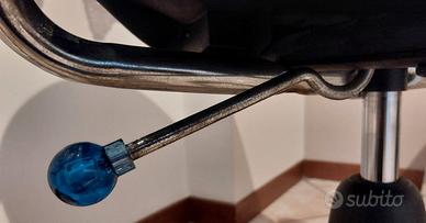 Sedia da computer/scrivania in plastica nera con braccia e gambe in acciaio, solida e funzionale. Ideale per cameretta o studio. Struttura: Seduta in plastica nera e base a 5 razze in metallo con rotelle ( funzionanti). Regolazione: Altezza regolabile tramite levetta (altezza circa 90 cm regolabile, larghezza postazione 42 cm). Condizioni: Buone condizioni generali. Segnalo soprattutto graffi sul retro dello schienale e segni di usura sulla levetta in acciaio (come da foto), che non ne compromettono l’utilizzo. Note: Schienale fisso (non reclinabile). Disponibile per il ritiro a mano possibilmente presso la mia abitazione, se interessati.