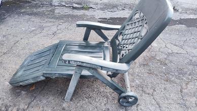 Vendo sedia sdraio da giardino usata ma ancora in buono stato d'uso. In plastica resistente e di ottima qualità. Schienale reclinabile e con poggiapiedi abbassabile. Completamente richiudibile