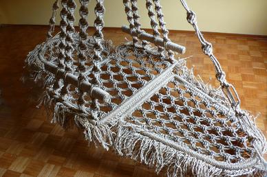 Sedia-sdraio letto poltrona in corda con telaio di ferro. Multi utilizzo a seconda della disposizione delle parti. Comprata in Brasile 25 anni fa, mai utilizzata sempre tenuta chiusa in una scatola in cantina. Pesa 30 chili, l’ ingombro è notevole. Necessita di un ambiente adeguato per essere appesa tipo una trave, un porticato, una villa. No spedizioni solo ritiro in zona Milano.