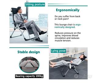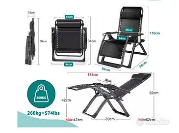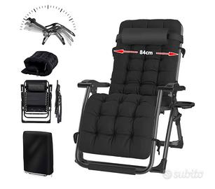 Sedia Sdraio Pieghevole 84cm, con Cuscino, per Esterni, Senza Peso, Regolabile, per Patio, Giardino, Spiaggia, Piscina, Nero o grigio disponibili 2 sdraio nuove mai usate