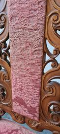 La sedia presenta intagli elaborati, volute e forme che richiamano lo stile rinascimentale, molto popolare nei revival dell'arredamento tra la fine dell'Ottocento e l'inizio del Novecento. Tappezzeria molto ben tenuta.