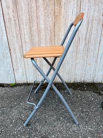 Sgabello pieghevole salva spazio con struttura in acciaio verniciato e tubo di diametro mm 25. Piano seduta e schienale in legno di faggio europeo di origine certificata.