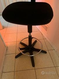 sedia sgabello con leva per alzare e abbassare la seduta, sedile imbottito, struttura robusta, colore nero.
