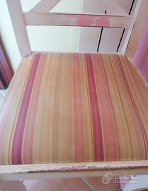 Vendo bellissima sedia stile shabby chic, da restaurare eliminando la vernice bianca, e rifoderare la seduta. Ottimo pezzo d'arredo, la struttura è in ottime condizioni. Il suo colore originale è rosa glicine.